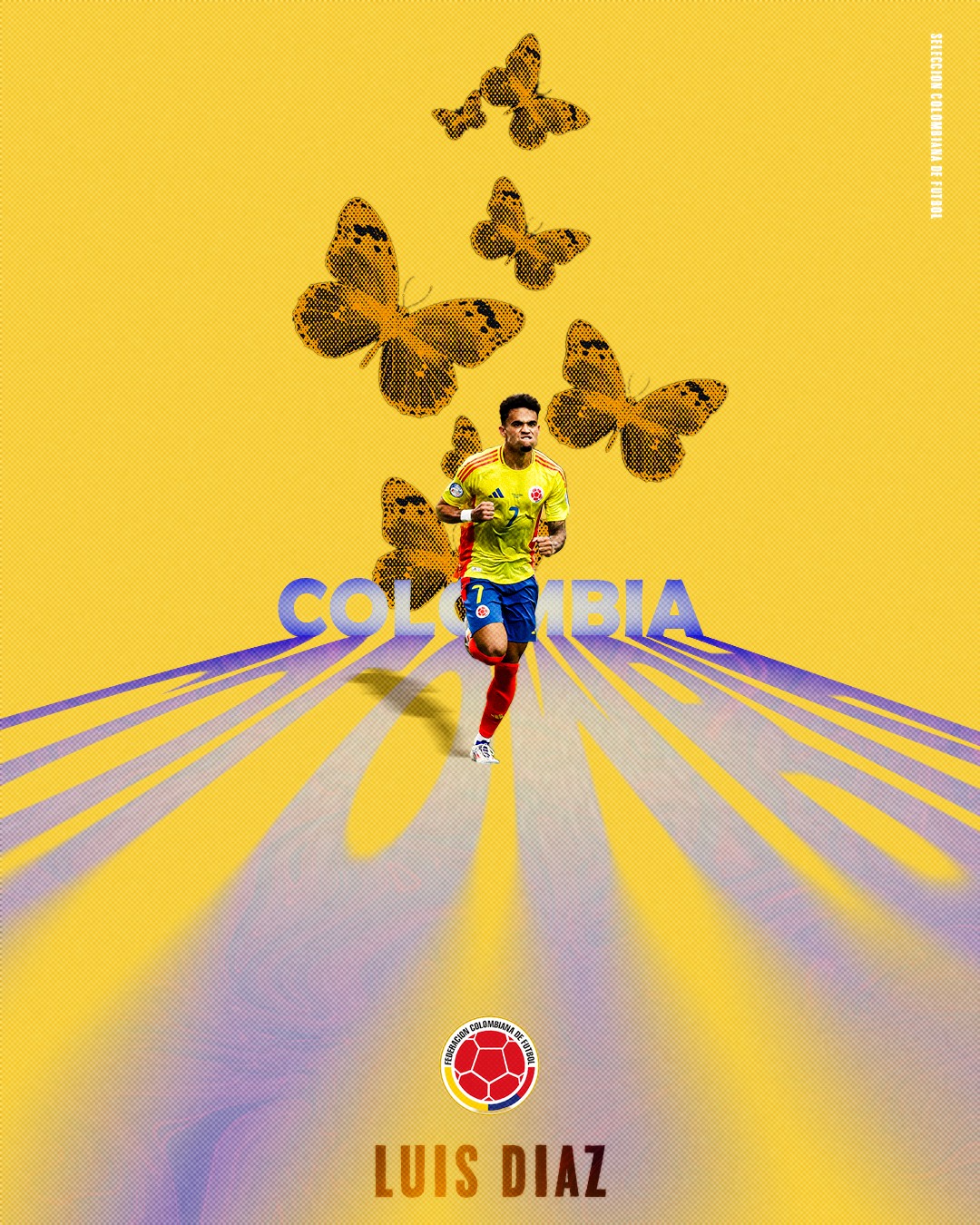 Growing up loving the Colombian national team, I love opportunities to brag about my home country and how could I not with such a player like Luis Diaz. This post was meant to highlight his passion when that yellow jersey is on through bold colors and symbols that are significant beyond the sport.